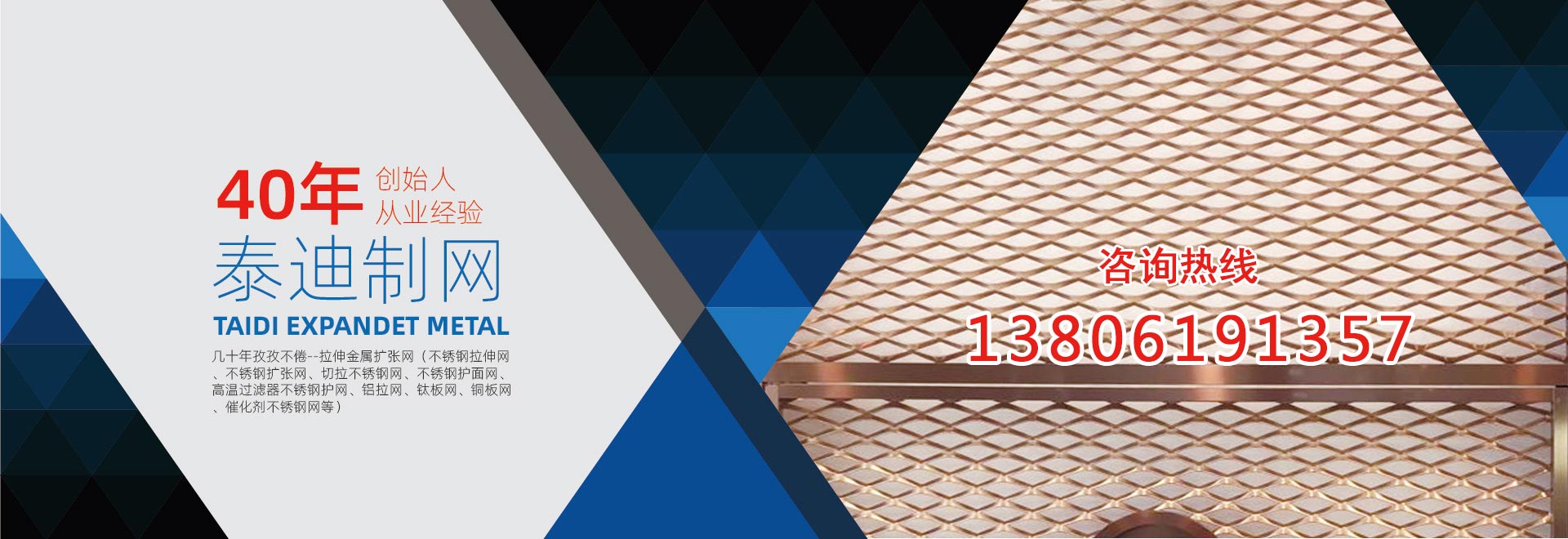 無錫泰迪環(huán)保科技有限公司,是一家專業(yè)生產(chǎn)金屬拉伸擴張網(wǎng)的企業(yè)。公司特長是:不銹鋼擴張網(wǎng)、拉伸擴張小孔、微孔網(wǎng)、奧氏體不銹鋼304、316網(wǎng)、超奧氏體不銹鋼網(wǎng)、鎳基不銹鋼的切拉擴張網(wǎng)生產(chǎn)、加工。產(chǎn)品包括:不銹鋼拉伸網(wǎng)、不銹鋼擴張網(wǎng)、切拉不銹鋼網(wǎng)、不銹鋼護面網(wǎng)、高溫過濾器不銹鋼護網(wǎng)、 板式催化劑不銹鋼網(wǎng)。復合針孔鋁板、針孔鋁拉網(wǎng)、微孔鋁板、微孔吸音鋁板、針孔吸音鋁板、微穿孔不銹鋼網(wǎng)、不銹鋼電池集流網(wǎng)、電池用不銹鋼網(wǎng)、鈦板網(wǎng)、不銹鋼板網(wǎng)、鎳板網(wǎng)、銅板網(wǎng)。鉛板網(wǎng)、超奧氏體不銹鋼板網(wǎng)、鎳基不銹鋼板網(wǎng),鋁拉網(wǎng)、鋁板拉伸網(wǎng)、拉伸屏蔽網(wǎng)、不銹鋼過濾器網(wǎng)、不銹鋼過濾網(wǎng),不銹鋼濾芯網(wǎng)、濾筒不銹鋼網(wǎng),音箱喇叭網(wǎng)罩。公司前身為13年成立的無錫泰迪金屬制品有限公司。公司創(chuàng)始人陳正芳先生從事切拉擴張網(wǎng)專業(yè)四十年,公司產(chǎn)品在總工程師繆志明(原上海中國鋼板網(wǎng)廠工程師)指導下,一直保持優(yōu)良品質。